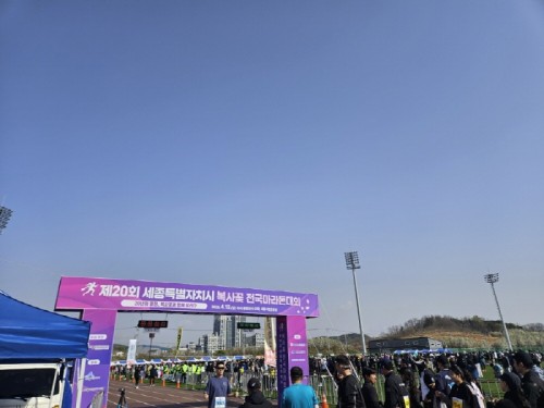 세종SA축구단 선수들이 제20회 세종특별자치시 복사꽃 전국마라톤대회에 방문하여 봉사활동에 참여하였습니다.